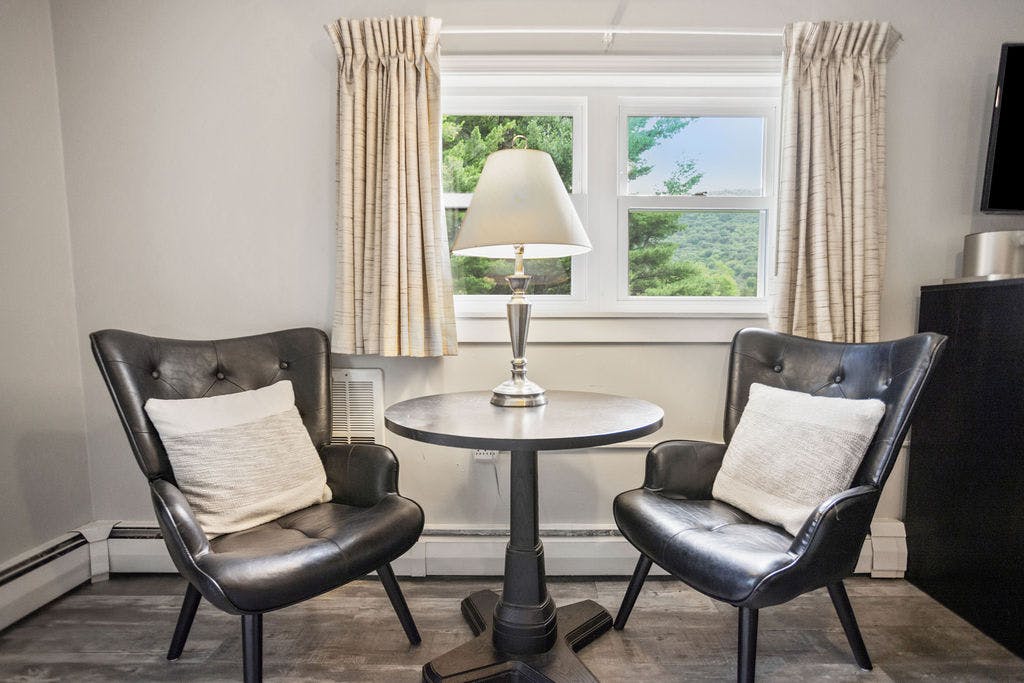 No matter the season, you'll stay comfortable with our air conditioning and heating facilities. And when you want to soak in the stunning views, simply step outside onto your private porch, complete with a cozy sitting area where you can unwind and enjoy the beauty of your surroundings.