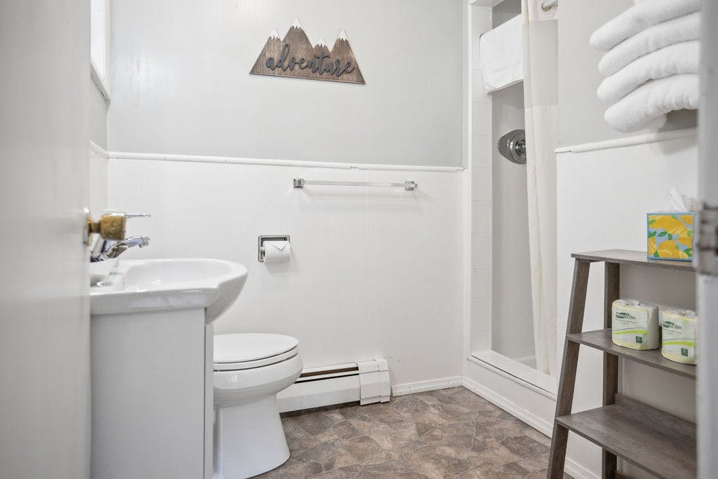 For your added convenience, we've included a microwave and mini fridge, allowing you to indulge in your favorite snacks and beverages at your leisure. Need to freshen up? Step into your private bathroom, where you'll find everything you need for a refreshing shower.